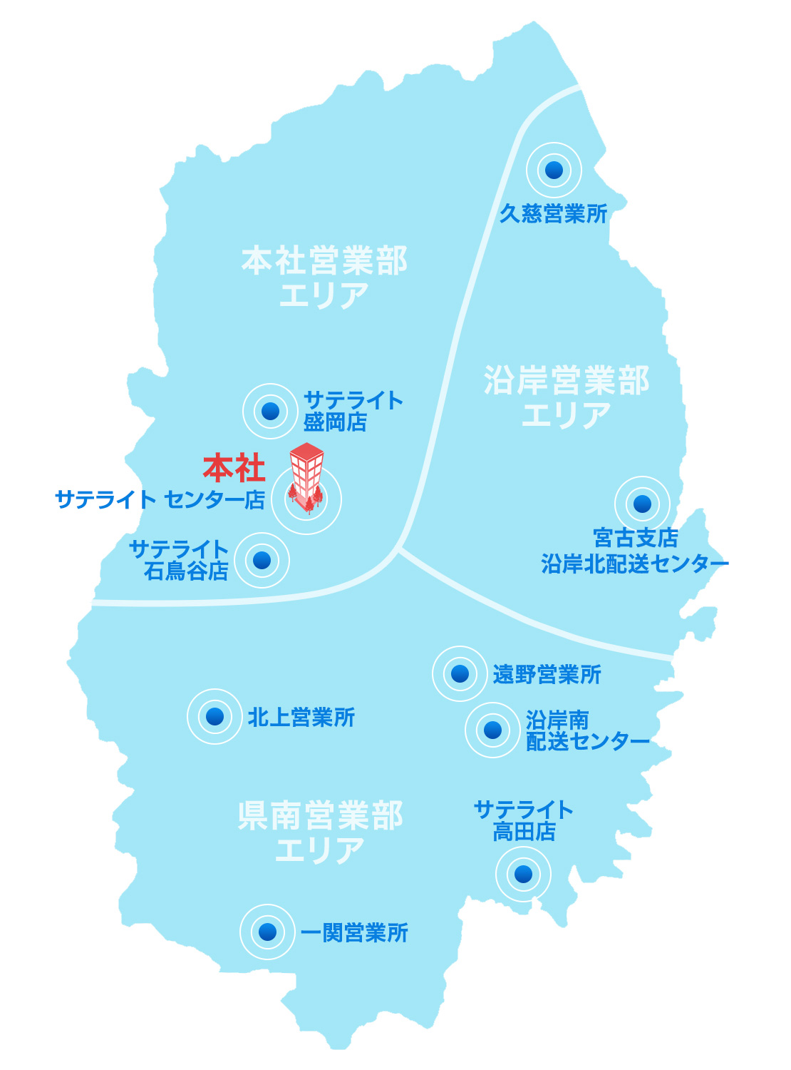 岩手県内、11拠点で地域に密着したサービスをご提供しています。